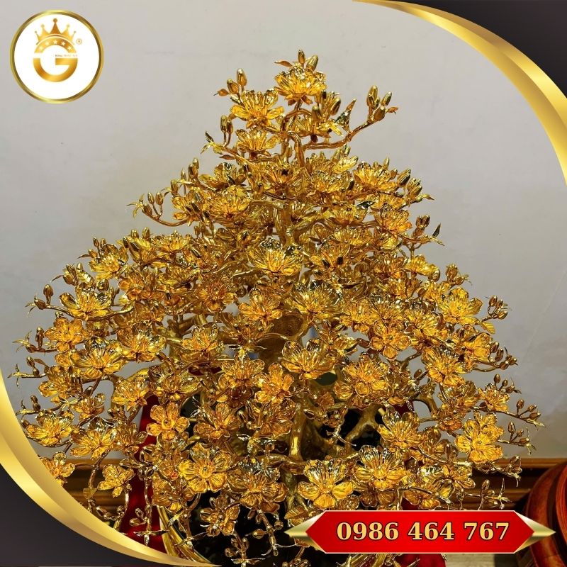 Cây mai đứng cao 56 cm, tán rộng 52 cm là một mẫu vật phẩm phong thủy cao cấp được chế tác từ đồng mỹ nghệ tinh xảo, thường được khách hàng lựa chọn để trưng bày trong phòng khách, bàn làm việc lãnh đạo, quầy lễ tân công ty hoặc sử dụng làm quà tặng cao cấp trong nhiều dịp như Tết Nguyên Đán, khai trương, tân gia hoặc thăng chức. Với kiểu dáng cân đối, dáng đứng vững vàng và bố cục hài hòa, sản phẩm vừa mang giá trị nghệ thuật, vừa chứa đựng ý nghĩa phong thủy sâu sắc.