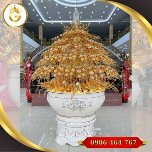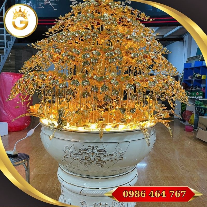 Chậu hoa lan vàng lớn nhất Sài Gòn là một tác phẩm nghệ thuật đỉnh cao trong chế tác đồ đồng mỹ nghệ mạ vàng 24K, với kích thước ấn tượng cao 1m97 – rộng 1m40. Sản phẩm được thi công bằng đồng nguyên chất và mạ vàng 24K thật theo kỹ thuật thủ công tỉ mỉ, tạo nên chậu hoa lan cỡ đại có cả giá trị thẩm mỹ lẫn phong thủy nổi bật. Đây không chỉ là vật trang trí đẹp mắt mà còn là biểu tượng của sang trọng, đẳng cấp và thịnh vượng lâu dài trong không gian trưng bày.