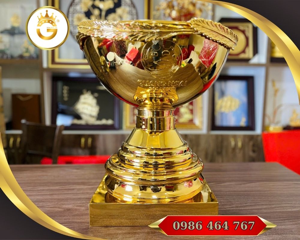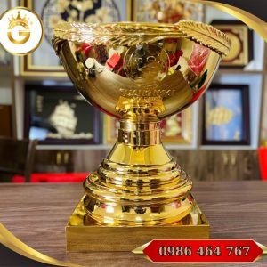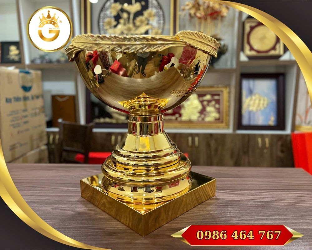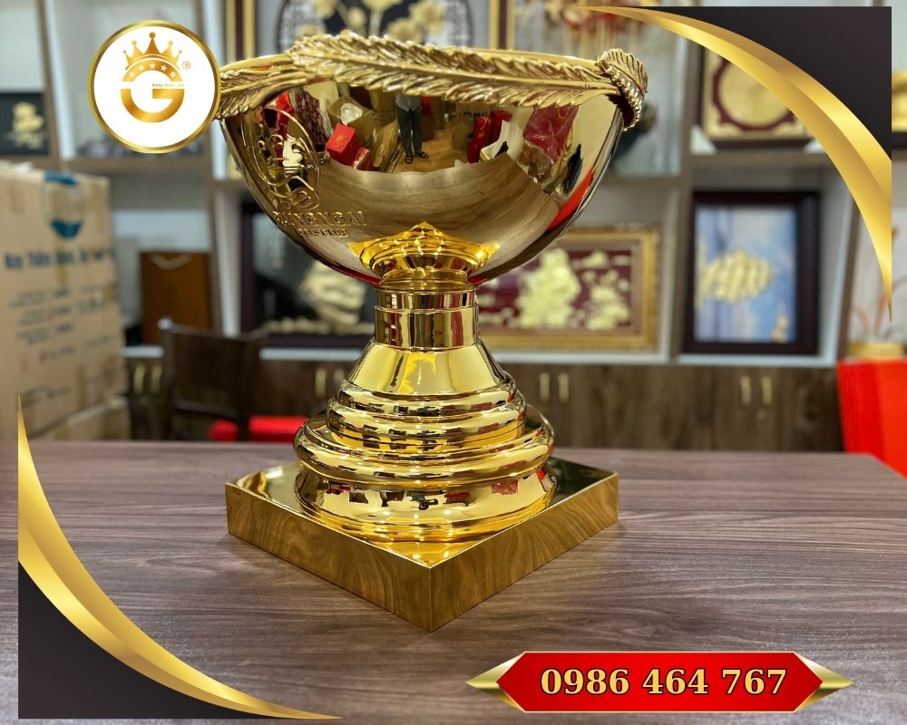 Cúp golf bằng đồng mạ vàng 24K là một sản phẩm quà tặng cao cấp và biểu tượng phong thủy dành cho những giải đấu golf, sự kiện thể thao hay hoạt động tri ân doanh nghiệp. Cúp được chế tác từ đồng nguyên chất và mạ vàng thật 24K, mang đến vẻ đẹp tinh tế, sang trọng và giá trị lâu bền. Sản phẩm thường được đặt hàng theo từng giải đấu hoặc yêu cầu cá nhân để tôn vinh người chiến thắng và thể hiện sự trang trọng của tổ chức trao giải.