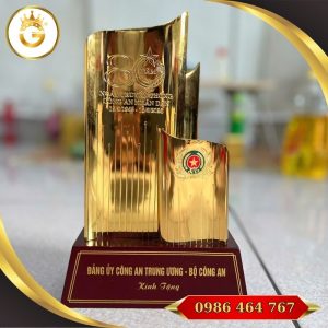 Chữ vàng khắc lên đế với lời tri ân: ví dụ “Kính tặng Cán bộ, Chiến sĩ Công an Nhân dân” hoặc các lời chúc, lời ghi nhận phù hợp.