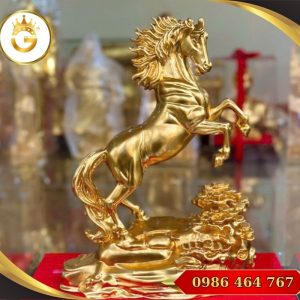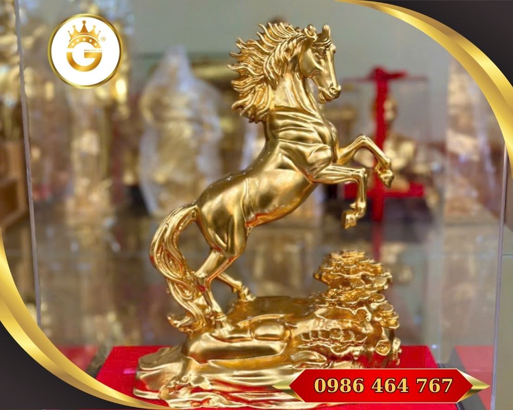 Tượng ngựa bằng đồng mạ vàng thường được chế tác từ đồng nguyên khối cao cấp rồi phủ một lớp vàng 24K sáng bóng, giúp sản phẩm vừa sang trọng vừa giữ giá trị lâu dài theo thời gian.