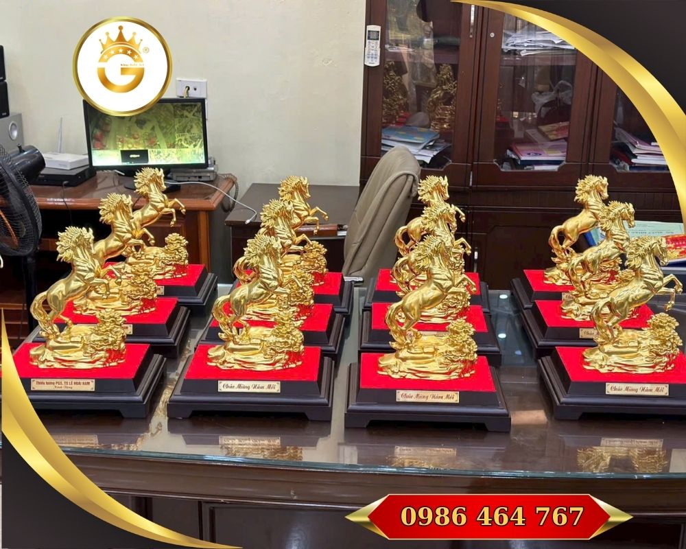 Trong bộ sưu tập quà tặng phong thủy năm Bính Ngọ 2026, các mẫu ngựa bằng đồng dát vàng 24K được đánh giá là những sản phẩm đẹp nhất và ý nghĩa nhất tại Sài Gòn. Tượng ngựa mạ vàng không chỉ là tác phẩm nghệ thuật tinh xảo mà còn là linh vật phong thủy mang năng lượng tích cực cho người sở hữu.