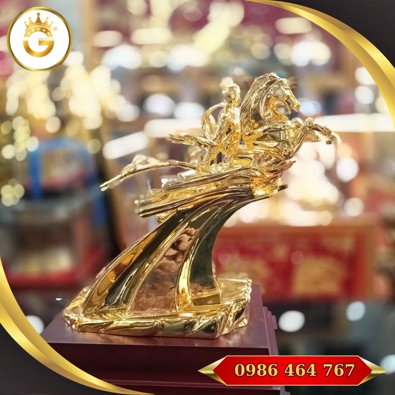 Mô hình Thánh Gióng mạ vàng là sản phẩm mỹ nghệ cao cấp, tái hiện hình tượng Phù Đổng Thiên Vương – vị anh hùng huyền thoại trong tứ bất tử của dân gian Việt Nam. Với hình ảnh cưỡi ngựa sắt, vươn mình ra trận đánh tan giặc Ân, Thánh Gióng đã trở thành biểu tượng cho sức mạnh, tinh thần quật cường và lòng yêu nước của dân tộc.