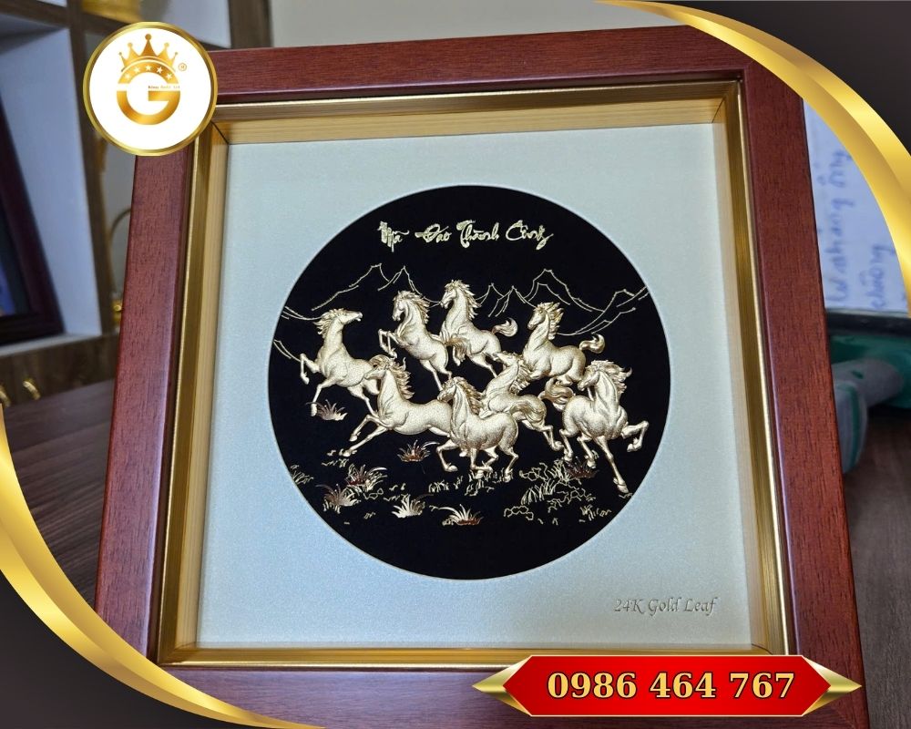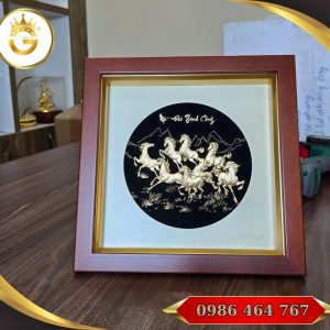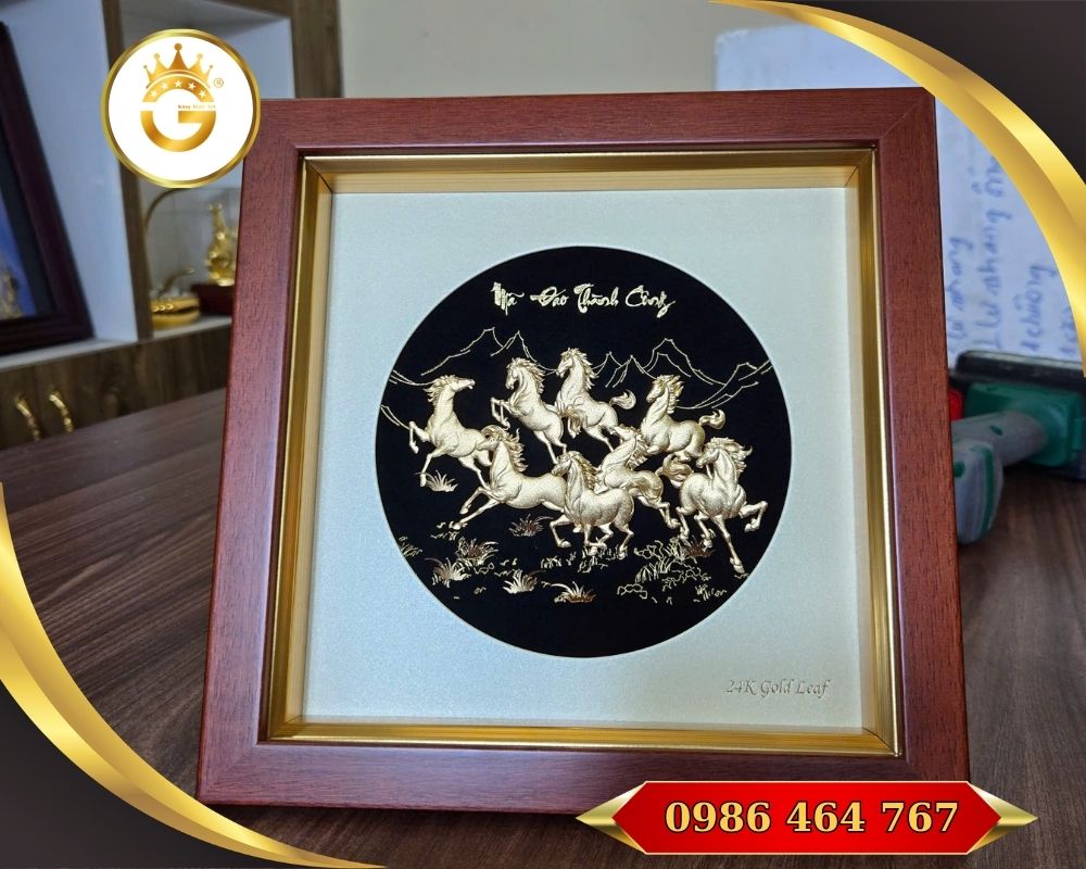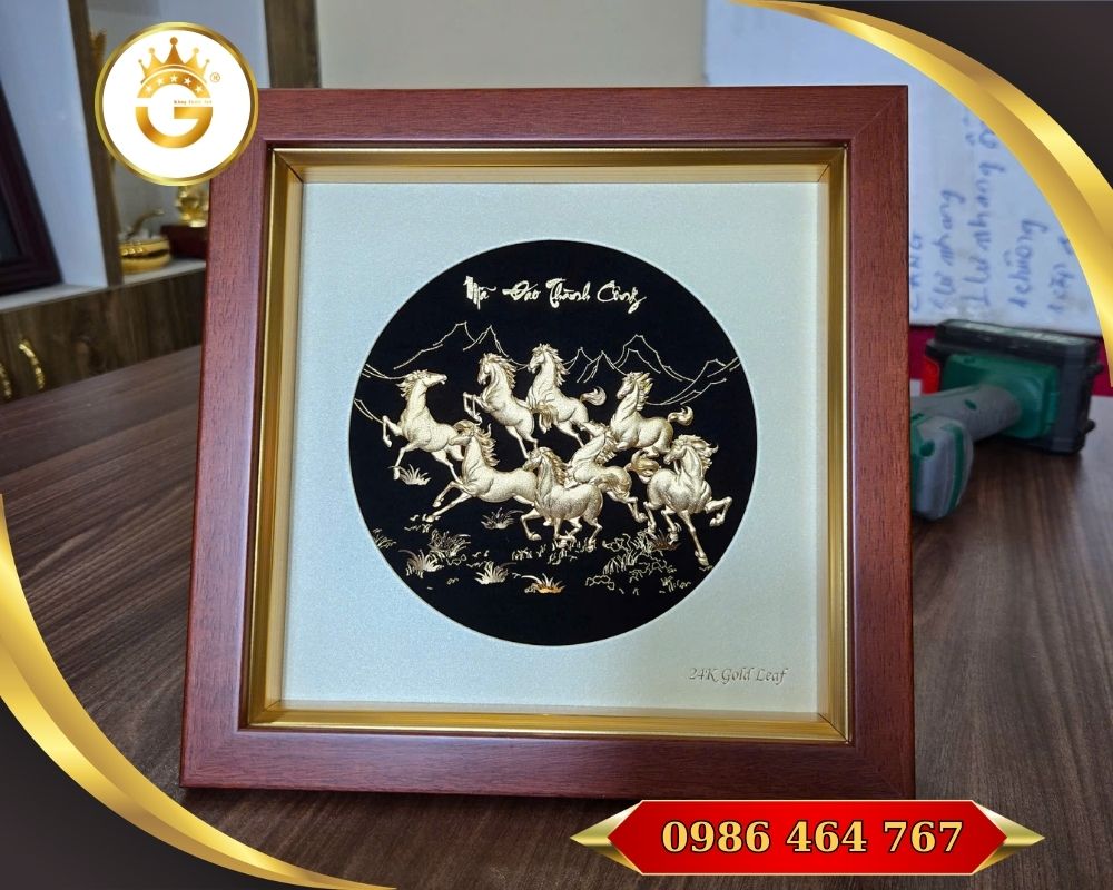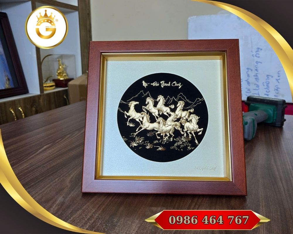 Tranh Bát Mã Mạ Vàng 24K Kích Thước Vuông 30 cm – Biểu Tượng Phong Thủy & Thành Công