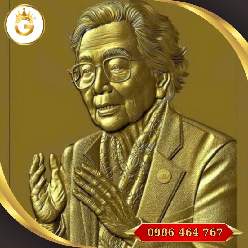 Tranh chân dung bằng đồng dát vàng 24k là một trong những dòng sản phẩm cao cấp, kết hợp giữa nghệ thuật tạo hình tinh xảo và giá trị phong thủy – thẩm mỹ. Trong đó, tác phẩm chân dung bà Nguyễn Thị Bình được chế tác từ đồng nguyên chất, phủ lớp dát vàng 24k sang trọng, mang ý nghĩa lưu giữ hình tượng lịch sử và tôn vinh những giá trị lớn lao.