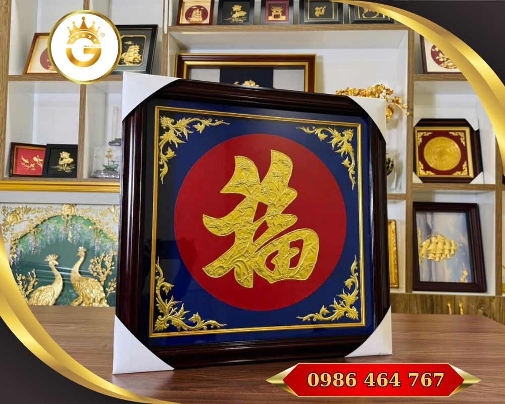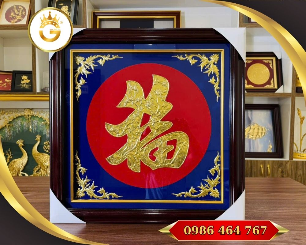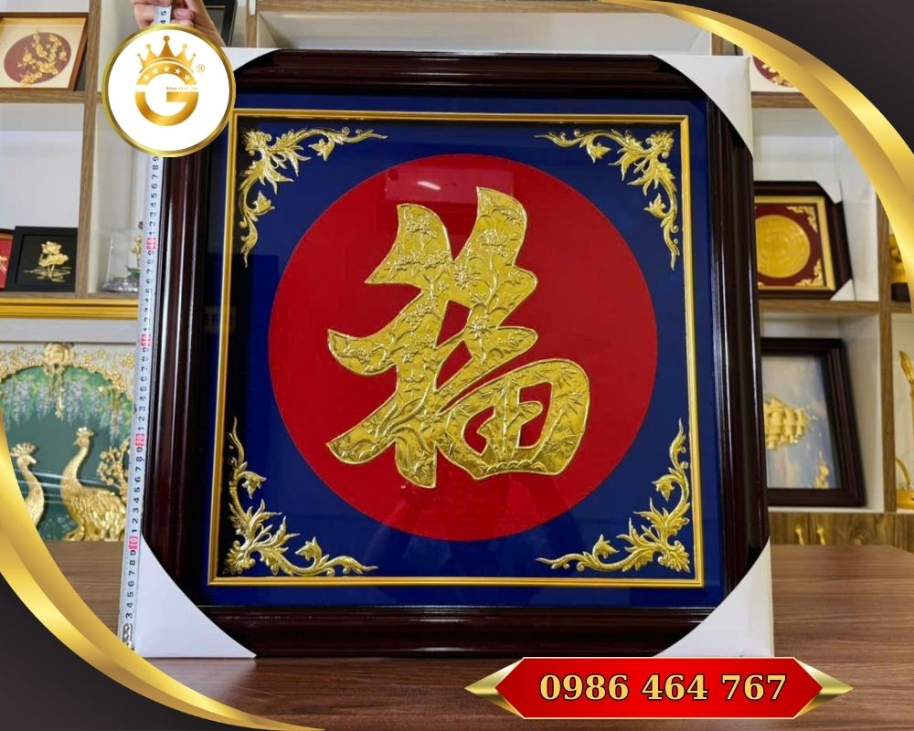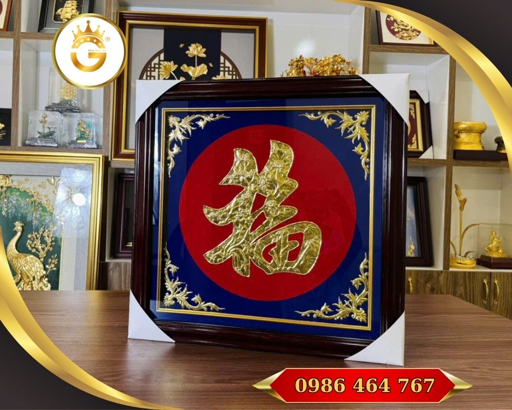 Chữ “Phúc” trong văn hóa phương Đông từ lâu được xem là biểu tượng của hạnh phúc, đủ đầy, an lành. Khi bức tranh được dát vàng 24K — tượng trưng cho sự giàu sang và quý giá — ý nghĩa phúc phần càng trở nên sâu sắc hơn: may mắn, tài lộc, bình an sẽ đến với gia chủ.