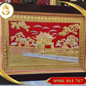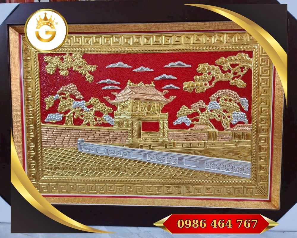 Tranh Khuê Văn Các bằng đồng dát vàng 24k kích thước 50 x 70cm là một trong những mẫu quà tặng cao cấp mang giá trị văn hóa – tri thức – phong thủy được nhiều doanh nghiệp tại Sài Gòn lựa chọn. Hình ảnh Khuê Văn Các – biểu tượng của Văn Miếu Quốc Tử Giám (Hà Nội) – tượng trưng cho trí tuệ, sự học, thành công và danh vọng, rất phù hợp làm quà tặng cho cán bộ lãnh đạo, nhà giáo, đối tác, cơ quan nhà nước hay các đơn vị giáo dục.