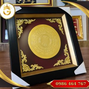 Khung & hoàn thiện: Khung tranh được làm từ gỗ hoặc hợp kim cao cấp, xử lý chống ẩm, chống mối mọt; mặt tranh phủ lớp bảo vệ để giữ lớp vàng không bị oxi hóa.