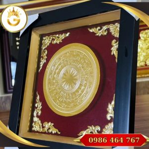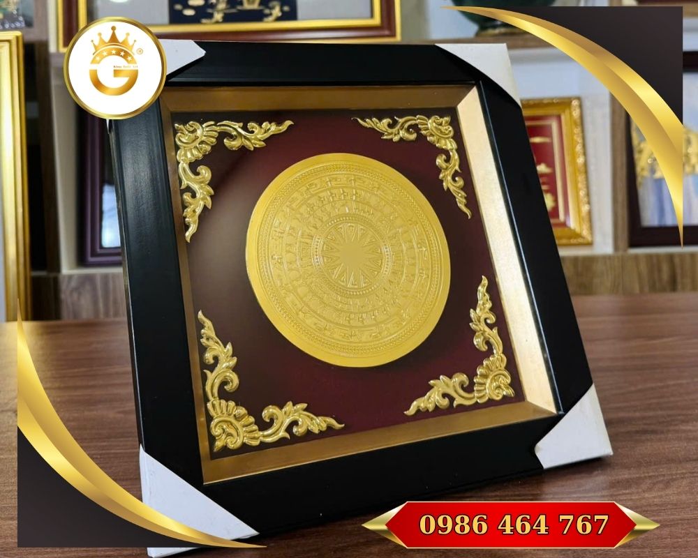 Tranh Mặt Trống Đồng mạ vàng 24k là tác phẩm nghệ thuật cao cấp, dựa trên hình tượng trống đồng Việt Nam cổ truyền (như trống Trống đồng Đông Sơn) được chế tác lại và dát mạ vàng 24k, khung tranh hoặc mặt nền tinh xảo. Sản phẩm mang vẻ đẹp sang trọng, biểu thị giá trị văn hóa dân tộc và phù hợp để trưng bày trong phòng khách, phòng làm việc, văn phòng doanh nghiệp hoặc sử dụng làm quà tặng cao cấp trong nhiều dịp đặc biệt.