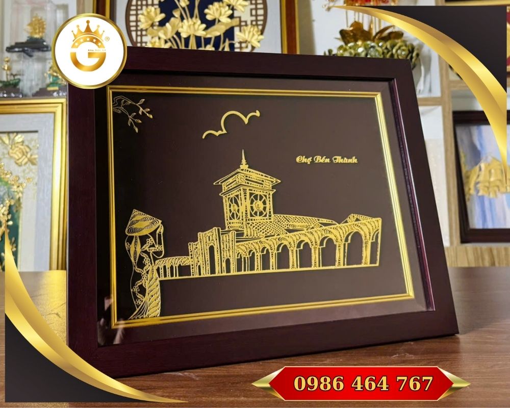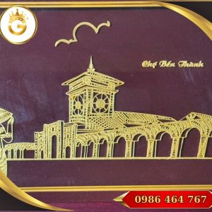 Tranh Quà Tặng Chợ Bến Thành dát vàng 24k