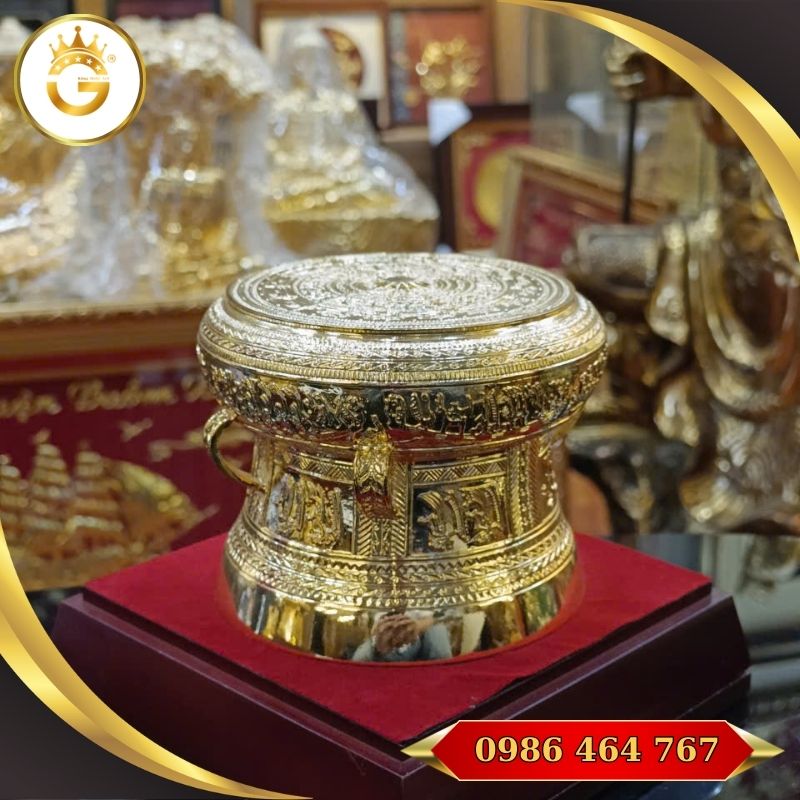 Trong số đó, trống đồng mạ vàng để bàn là lựa chọn phổ biến bởi vừa giữ được giá trị truyền thống, vừa toát lên vẻ đẹp sang trọng, hiện đại. Với thiết kế tinh xảo, bề mặt phủ vàng lấp lánh, sản phẩm không chỉ mang tính thẩm mỹ mà còn hàm chứa ý nghĩa phong thủy sâu sắc.