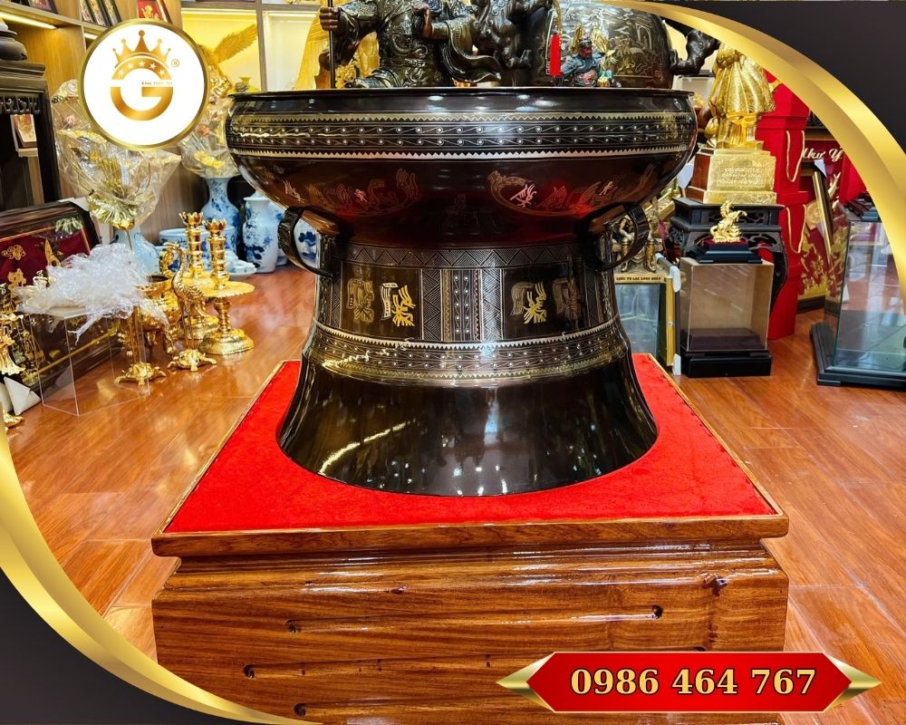 Việc đặt trống đồng ở vị trí trung tâm hoặc ánh sáng thiên nhiên chiếu vào sẽ làm nổi bật vẻ đẹp của sản phẩm và tăng tính phong thủy cho không gian.