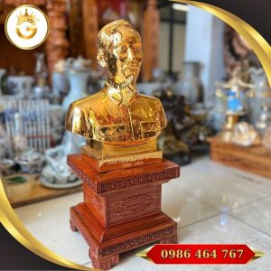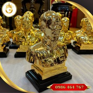 Tượng Bác Hồ bằng đồng mạ vàng 24K là tác phẩm nghệ thuật cao cấp, thể hiện lòng kính trọng đối với vị Lãnh tụ vĩ đại. Với thiết kế trang trọng, tinh xảo và chất liệu sang trọng, sản phẩm thích hợp làm quà tặng hoặc trưng bày tại những không gian trang nghiêm như phòng khách, phòng làm việc, phòng họp hoặc đại sảnh.