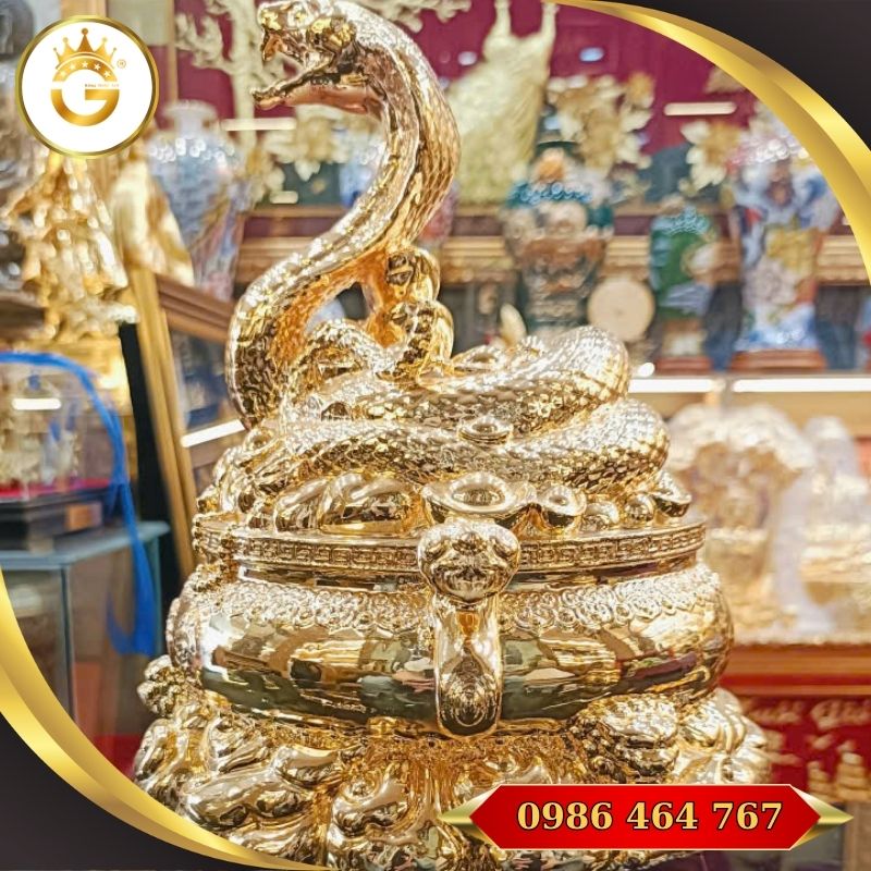 Trong phong thủy, rắn được coi là loài vật tượng trưng cho sự khôn ngoan, nhanh nhạy và khả năng nắm bắt cơ hội. Khi kết hợp với hũ tiền, hình tượng này trở thành biểu trưng mạnh mẽ cho sự giàu sang, sung túc và tích lũy tài lộc. Đặc biệt, phiên bản tượng rắn ôm hũ tiền mạ vàng 24k mang đến vẻ đẹp sang trọng, quý phái, đồng thời tạo năng lượng cát lành cho gia chủ.