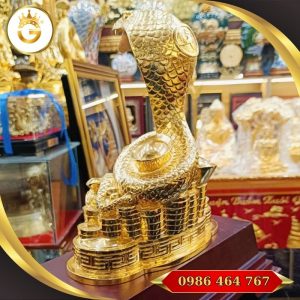 Ngày nay, tượng Rắn ôm thỏi vàng thường được chế tác từ đồng nguyên chất, phủ vàng 24k sang trọng, vừa có giá trị thẩm mỹ cao vừa mang năng lượng phong thủy mạnh mẽ.