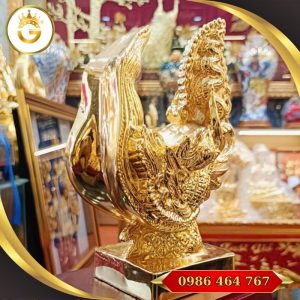 Chất liệu cao cấp: Tượng được đúc bằng đồng nguyên chất, sau đó mạ vàng 24k sang trọng, giữ được độ sáng bóng bền bỉ theo thời gian.