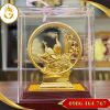 Vật liệu: đồng nguyên chất (hoặc hợp kim chất lượng) chế tác cứng cáp; lớp dát vàng 24K thật phủ bề mặt tạo độ sáng, sang trọng và bền.