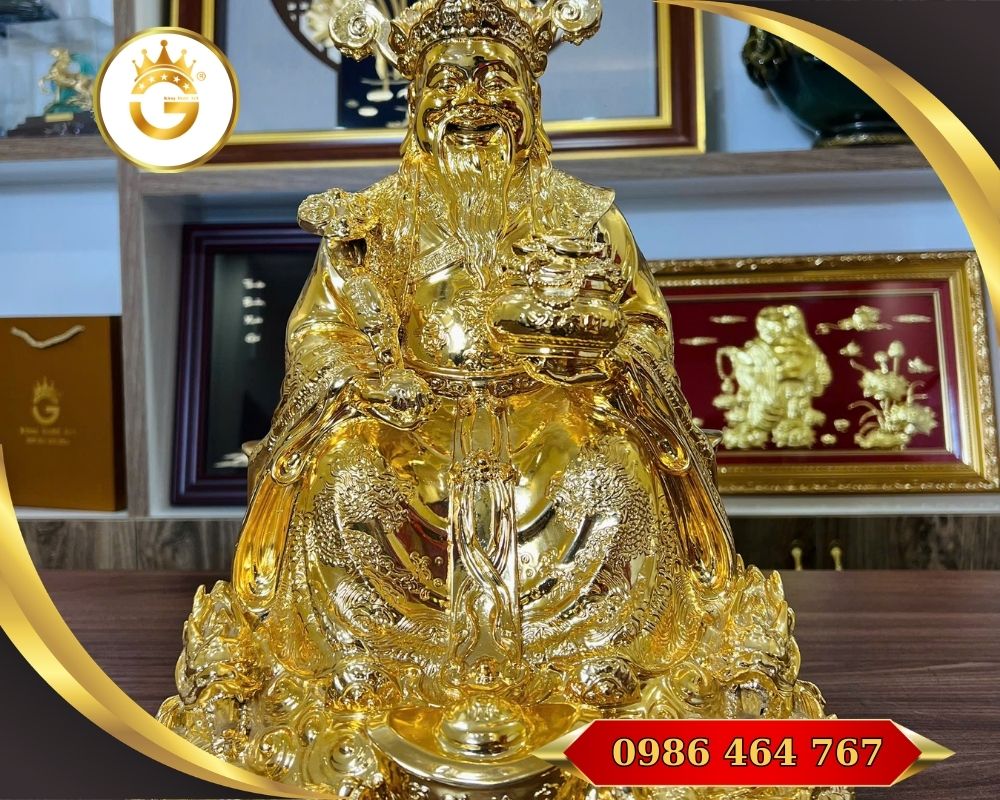 Tượng Thần Tài Bằng Đồng Mạ Vàng 24K Cao 35 cm – Thu Hút Tài Lộc & May Mắn